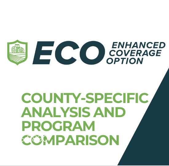ECO offers a robust layer of protection that complements traditional crop insurance. It’s an essential tool for farmers looking to manage risks efficiently, especially in a time where slight fluctuations in yield and price can significantly impact revenue. By considering ECO as part of their crop insurance plan, farmers can protect their operations against unpredictable market and weather conditions. Get an ECO analysis and quote today.