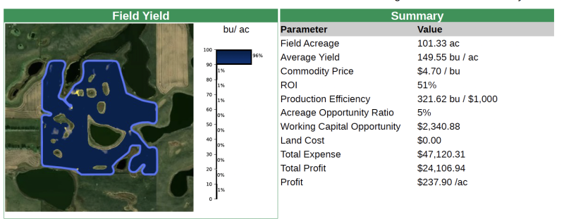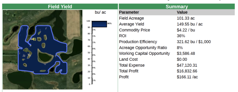 In 2025, we saw a significant price swing from Spring to Fall of $0.48. Any farmer will tell you prices will have a huge impact on profitability. With precision data, we can examine not only the top-line metrics, but we can also see exactly where fields are losing money.
