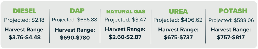 This April input discovery window is during a significant global market disruption. Ongoing conflict in the Middle East has introduced substantial uncertainty into energy and commodity markets. Diesel and natural gas prices have been especially affected. Fertilizer markets have seen large changes during the price discovery period.